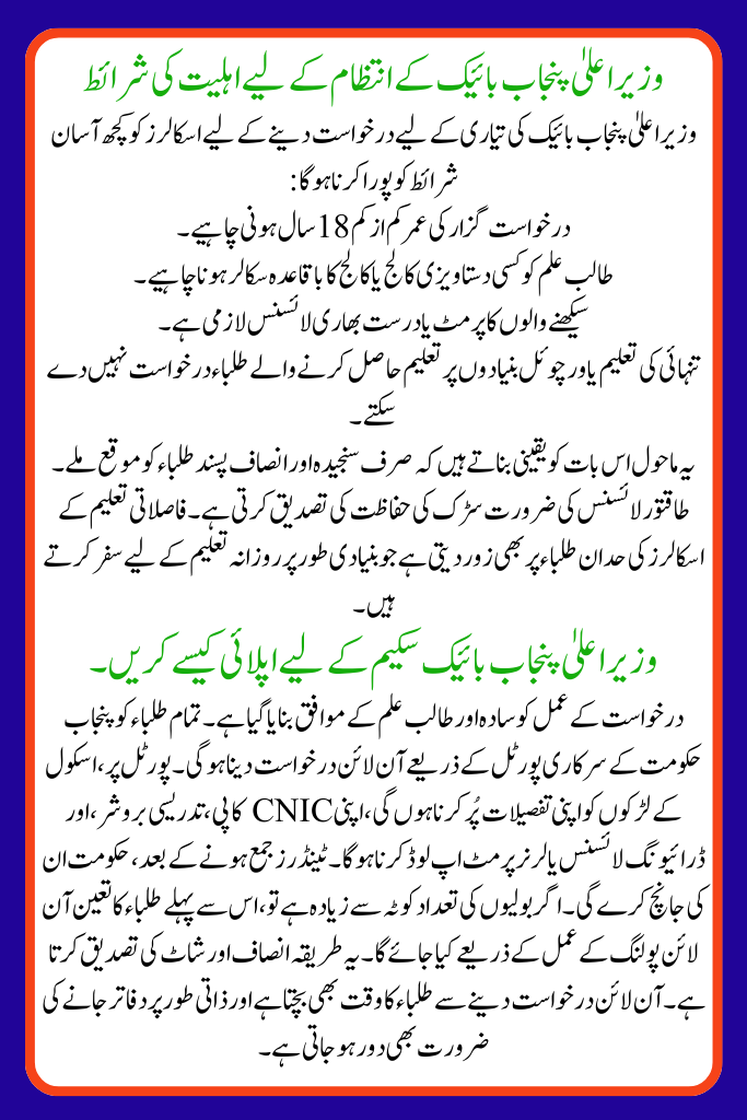 Eligibility Conditions for the CM Punjab Bike Arrangement