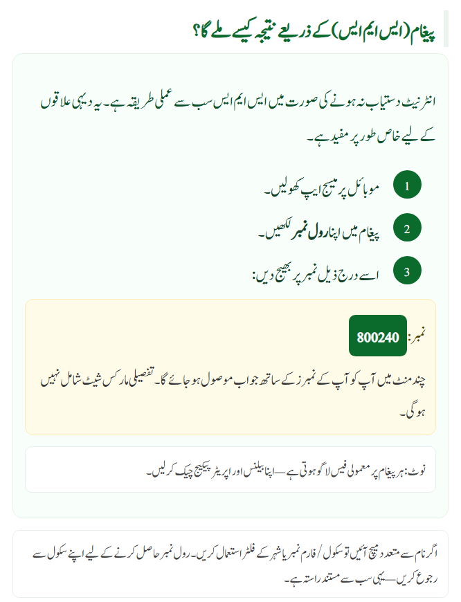 How to get Faisalabad Board 9th Class Result 2025 by Message (SMS)?