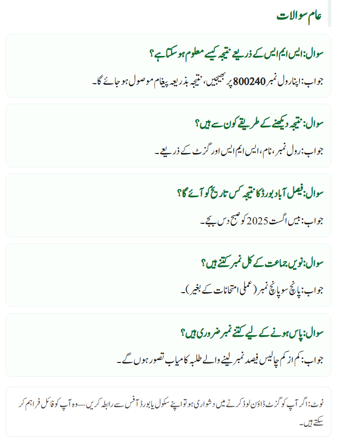 BISE Faisalabad 9th Class Result – Common Questions