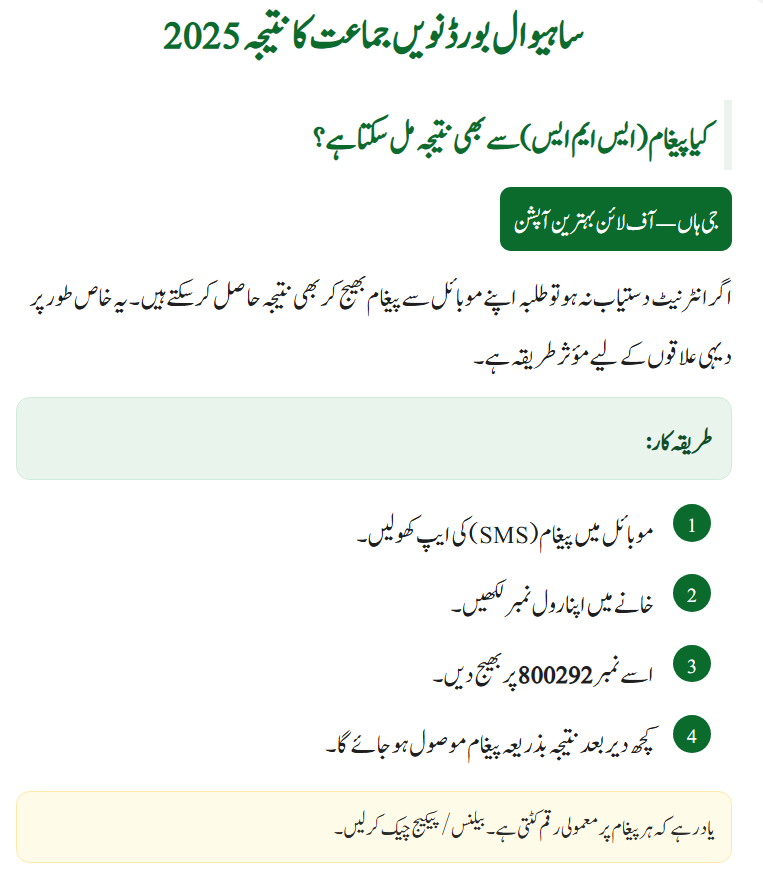 Can I get Sahiwal Board 9th Class Result 2025 through Message (SMS)?