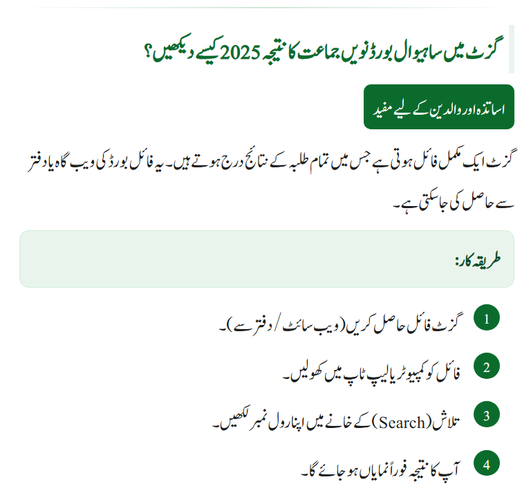 How to Check Sahiwal Board 9th Class Result 2025 in Gazette?