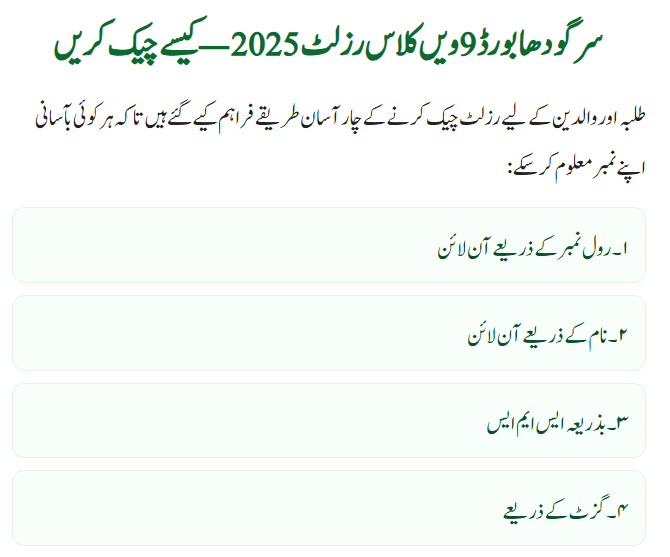 How to check Sargodha Board 9th Class Result 2025 through SMS?