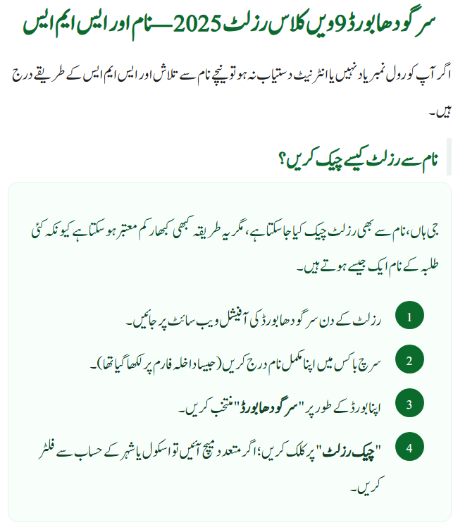 Can Sargodha Board 9th Class Result 2025 be checked by name?