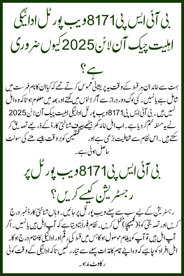 Why is BISP 8171 Web Portal Payment Eligibility Check Online 2025 Important?