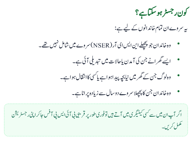 If your family falls into any of these categories, you must immediately visit the nearest BISP office and complete your registration.