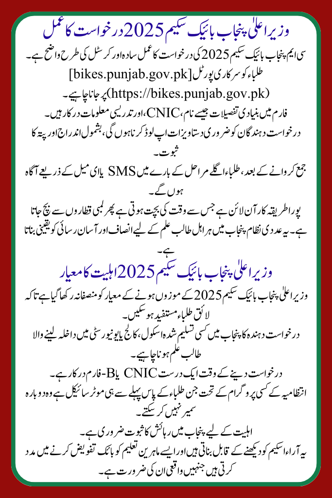 The CM Punjab Bike Scheme 2025 Apply Online is simple and clear as crystal.