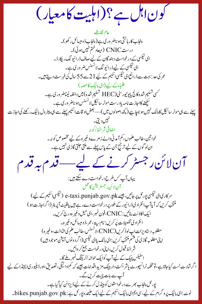 Here’s how you can apply CM Punjab E-Bike & E-Taxi Scheme: