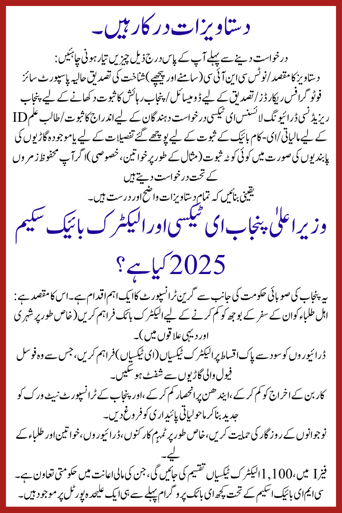 The CM Punjab E-Bike & E-Taxi Scheme 2025 is a milestone initiative meant at combining financial upliftment for youth & workers with environmental goals. If you are a student or driver in Punjab and meet the suitability, this is a great accidental to join the green flexibility wave.