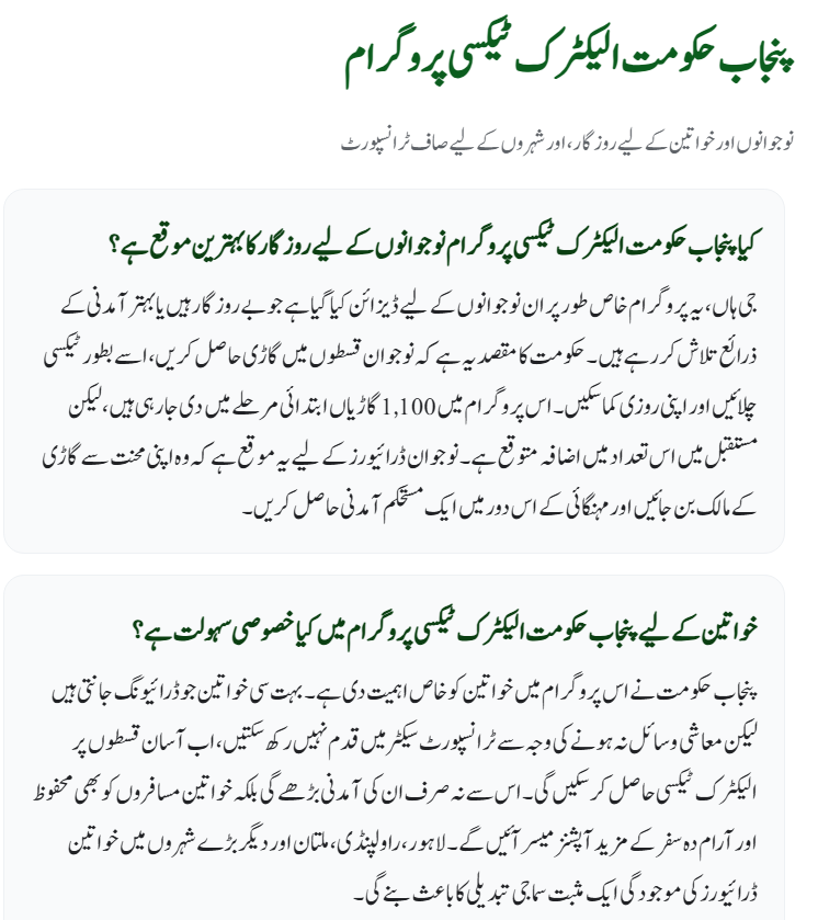 FAQs – Punjab Govt Electric Taxis on Easy Installments