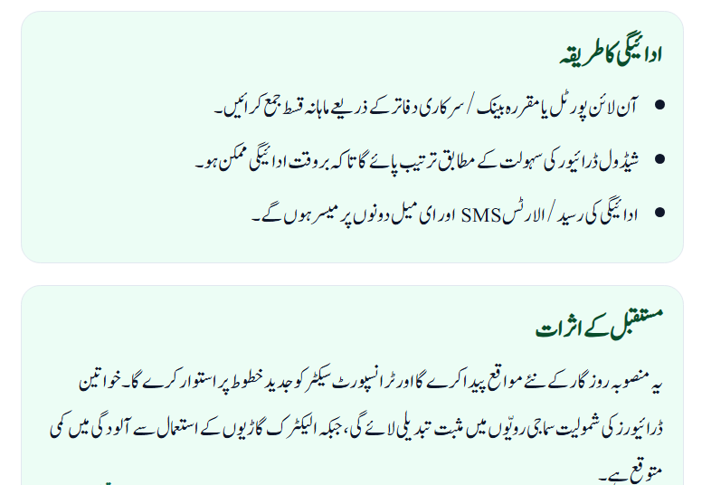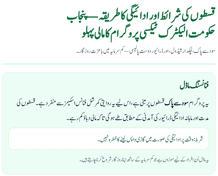 Installment terms and payment method – Financial details of Punjab Govt Electric Taxi Program