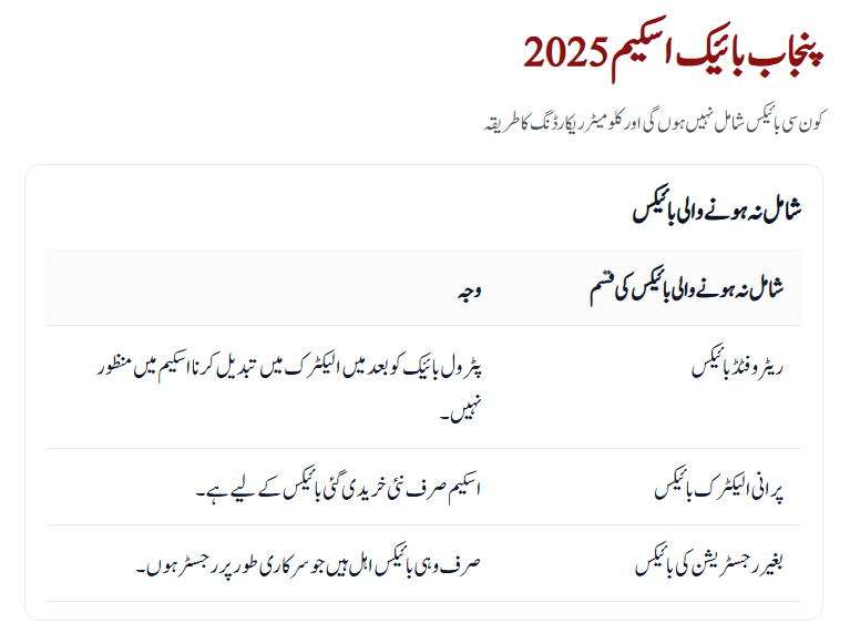 Which bikes will not be included in Punjab Bike Scheme 2025?