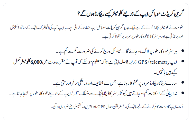 To record kilometers, the government has introduced a modern Green Credit Mobile App has been introduced. This app connects digitally with your electric bike and automatically saves the data of each trip on the server. In this way, it is known whether you have completed 6,000 km in the stipulated time or not. This system maintains transparency and eliminates the possibility of misrepresentation.