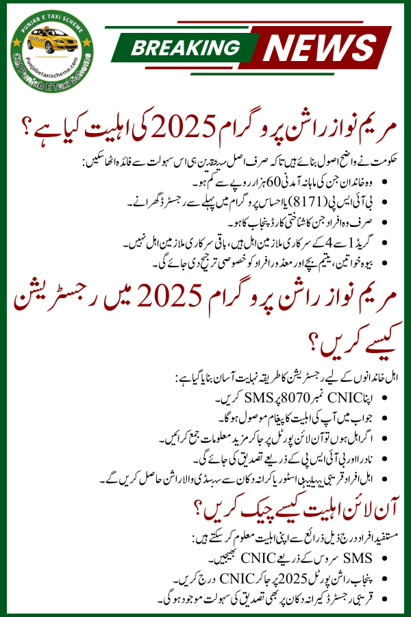 Today News: Maryam Nawaz Rashan Program 2025 Eligibility Announced – Check Online Registration